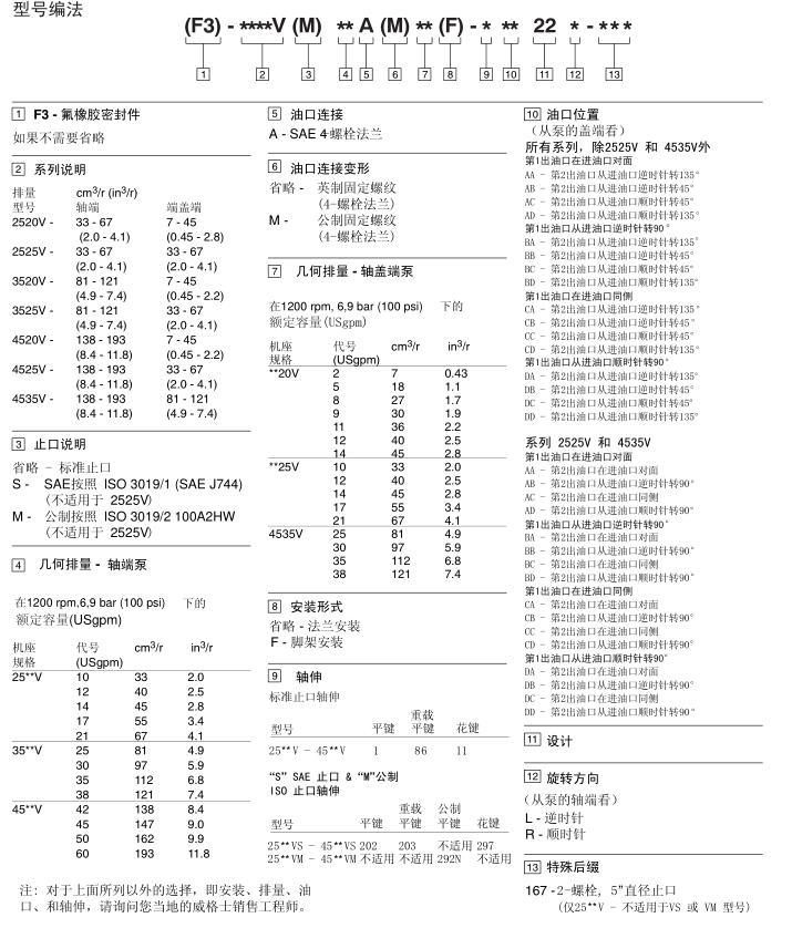 威格士雙聯泵型號編法