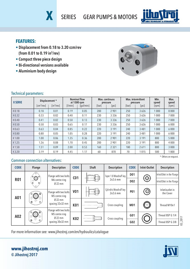 X系列JIHOSTROJ齒輪泵和電機設計用于性能非常低(高達2.3千瓦)的液壓系統。