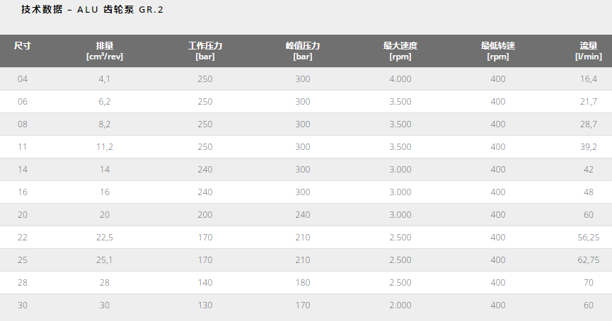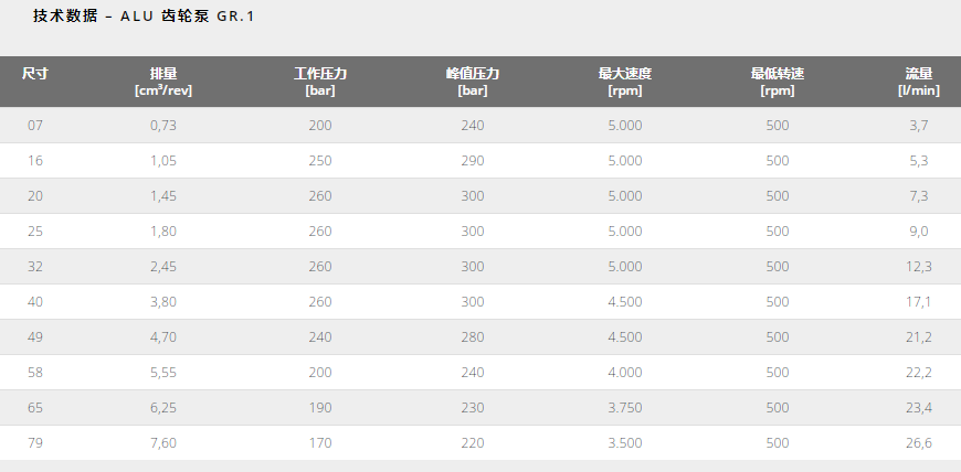 ALU 齒輪泵 GR. 1 – 2 – 3