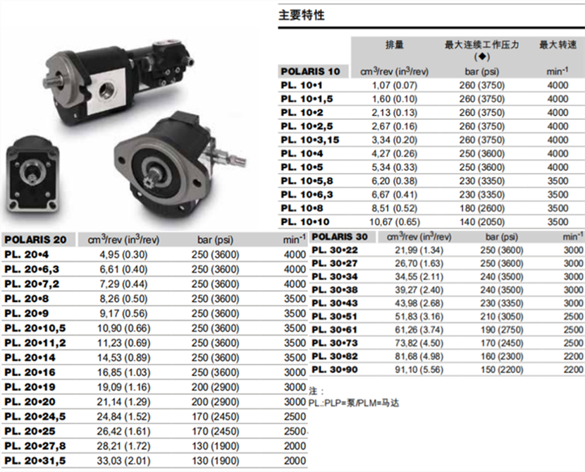北極星[PL]系列凱斯帕casappa齒輪泵特征: