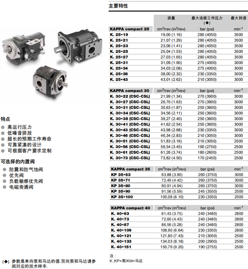 KAPPA緊湊型系列凱斯帕齒輪泵特點: