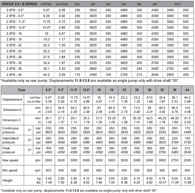 SALAMI薩拉米齒2.5PB系列齒輪泵型號及規格參數: