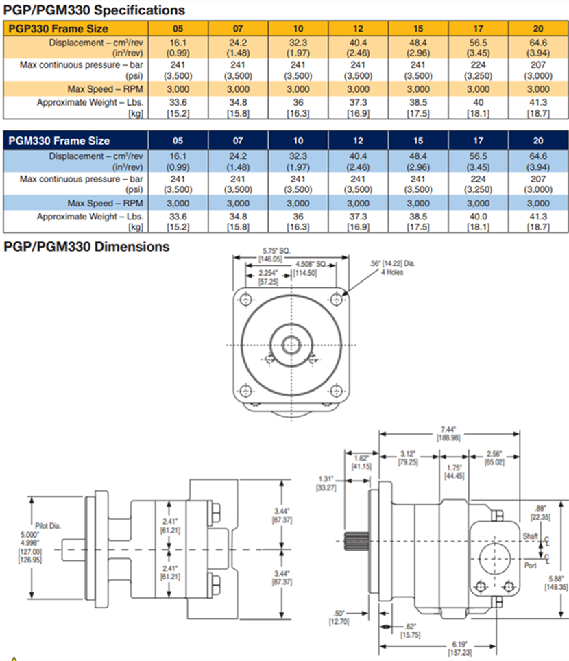 PGP 330具有高達241bar(3,500psi)的操作壓力和高達3,000rpm的速度。三件式鑄鐵結構,低摩擦襯套提供強度,高效率和在惡劣的操作環境下的長壽命。尺寸從16-65cc。