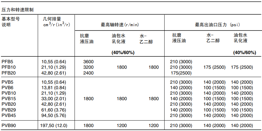 威格士PVB系列軸向柱塞泵技術參數: